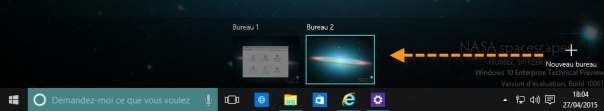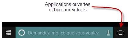 L’icône Affichage des tâches, à droite de Cortana, ou le raccourci clavier Windows + Tab, donne accès aux applications ouvertes et aux bureaux virtuels :