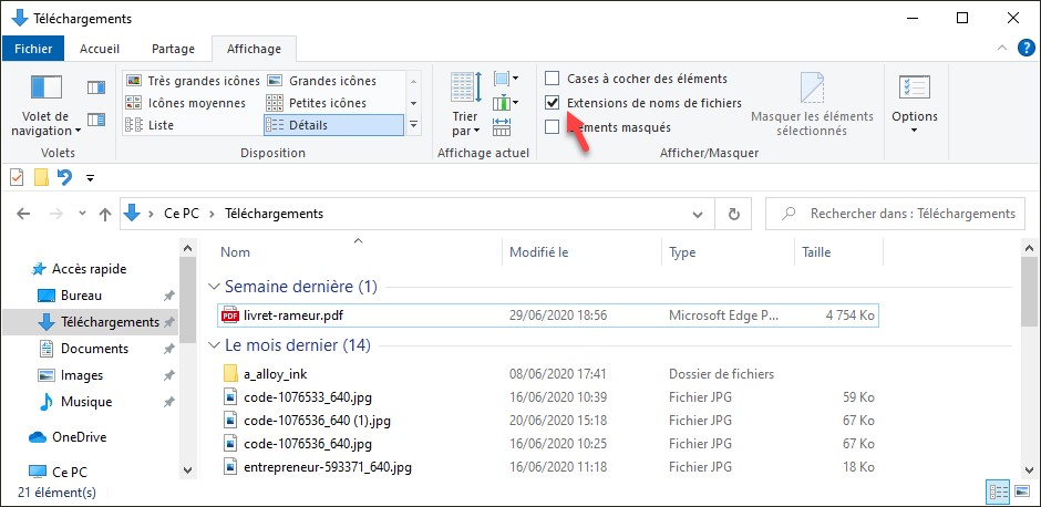 Quelle que soit la technique utilisée, les extensions des fichiers seront alors visibles dans l’Explorateur de fichiers.