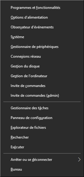 Est-ce que vous utilisez le menu Système de Windows ? Ce menu est accessible en cliquant avec le bouton droit de la souris sur le bouton Démarrer ou en appuyant simultanément sur les touches Windows et X :
