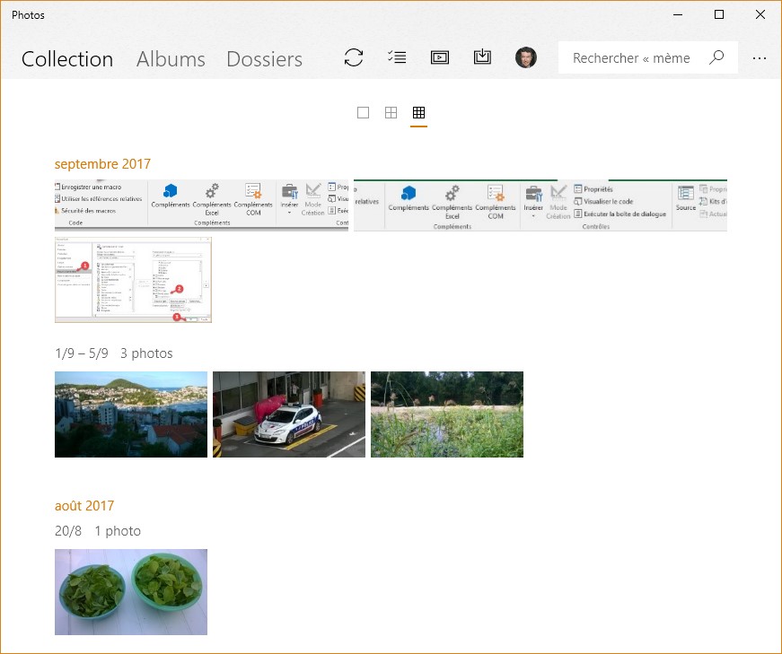 L’application Photos s’ouvre. Elle donne accès aux photos qui se trouvent dans votre bibliothèque Photos et sur OneDrive :