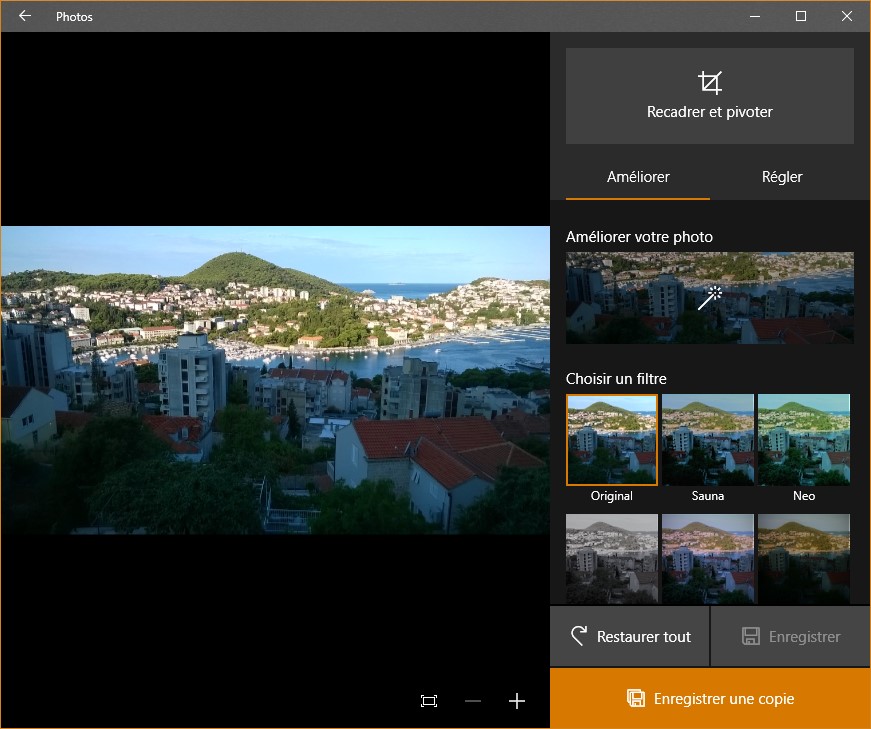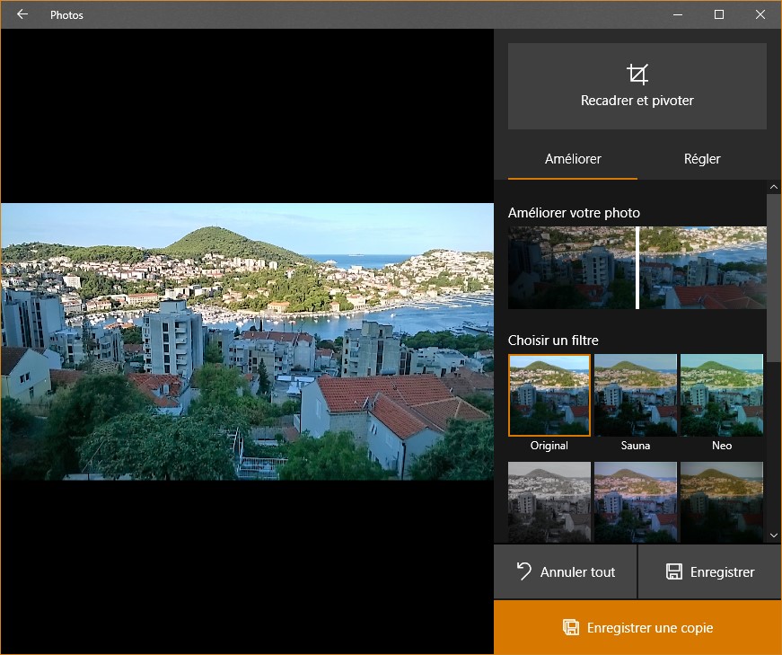 Pour améliorer rapidement la photo, vous pouvez cliquer sur l’outil Améliorer votre photo. L’amélioration est immédiate et souvent spectaculaire :