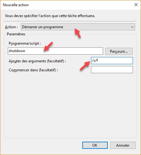 - Le nom de la nouvelle tâche : Arrêt de l’ordinateur.
