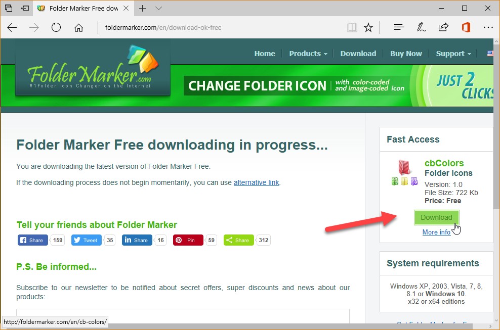 La modification de la couleur d’un dossier n’est pas prévue de base dans Windows 10. Pour y arriver, vous allez passer par un utilitaire nommé Folder Marker, librement téléchargeable sur http://foldermarker.com/en/download-ok-free/.