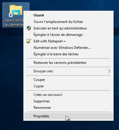 Cliquez du bouton droit sur l’icône que vous voulez modifier et sélectionnez Propriétés dans le menu :