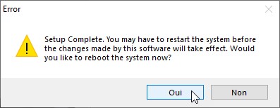 Patientez jusqu’à ce qu’une boîte de dialogue vous indique que vous devez redémarrer l’ordinateur pour finaliser l’installation :