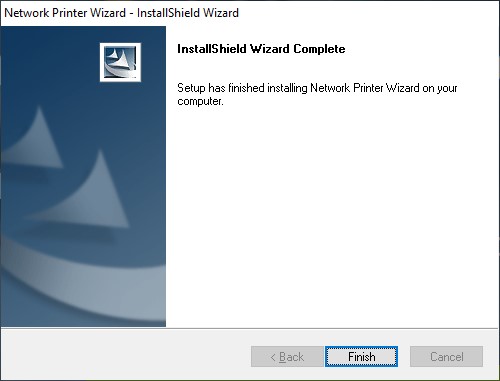 Quelques instants plus tard, une boîte de dialogue indique que le Network Printer Wizard est installé. Cliquez sur Finish :