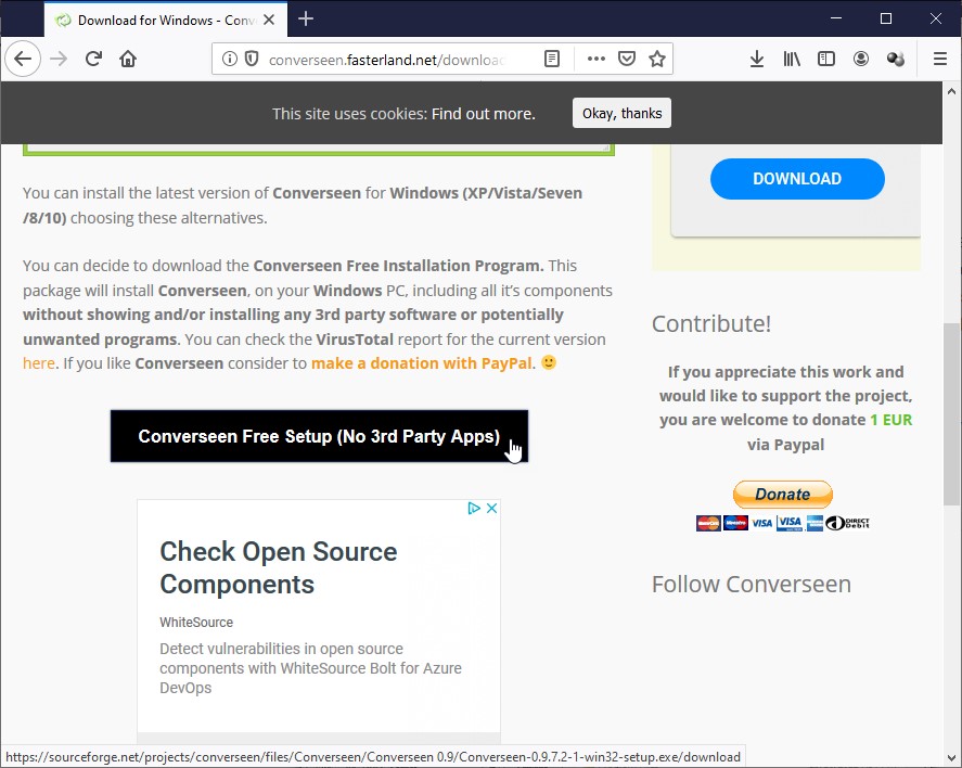Une nouvelle page s’affiche. Cliquez sur Converseen Free Setup (No 3rd Party Apps) :