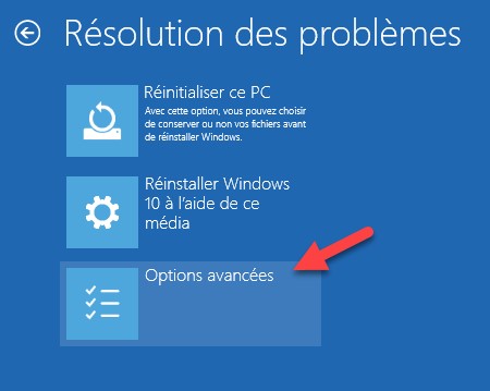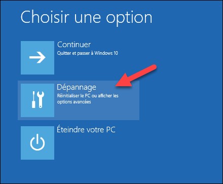 Au bout de quelques secondes, un écran bleu vous proposera plusieurs options. Cliquez sur Dépannage.