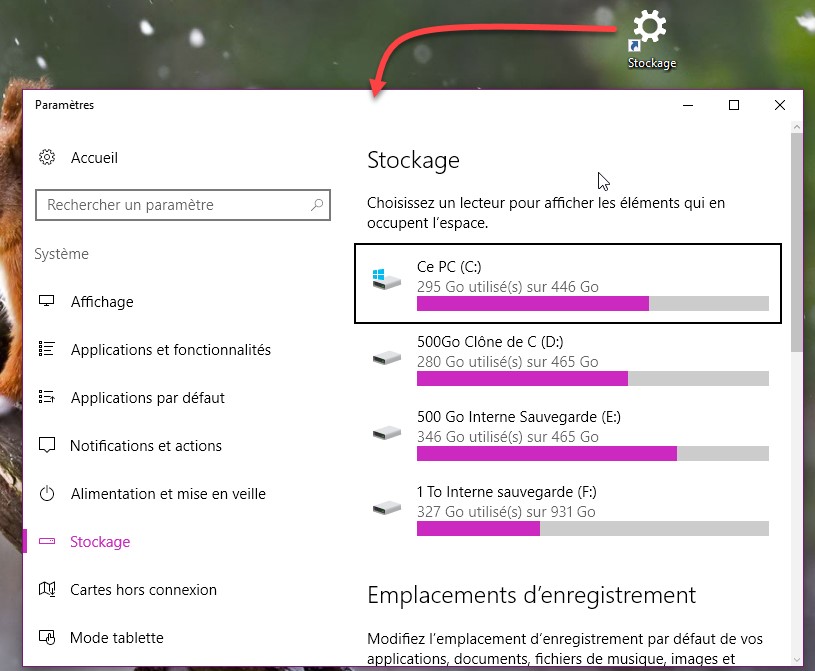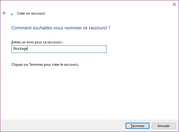 Il ne vous reste plus qu’à double-cliquer sur le raccourci pour accéder à la boîte de dialogue Stockage :