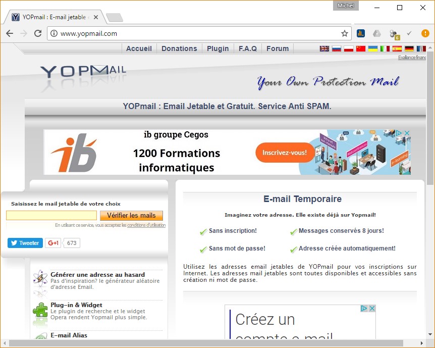 Ouvrez votre navigateur et allez sur la page http://www.yopmail.com/ :