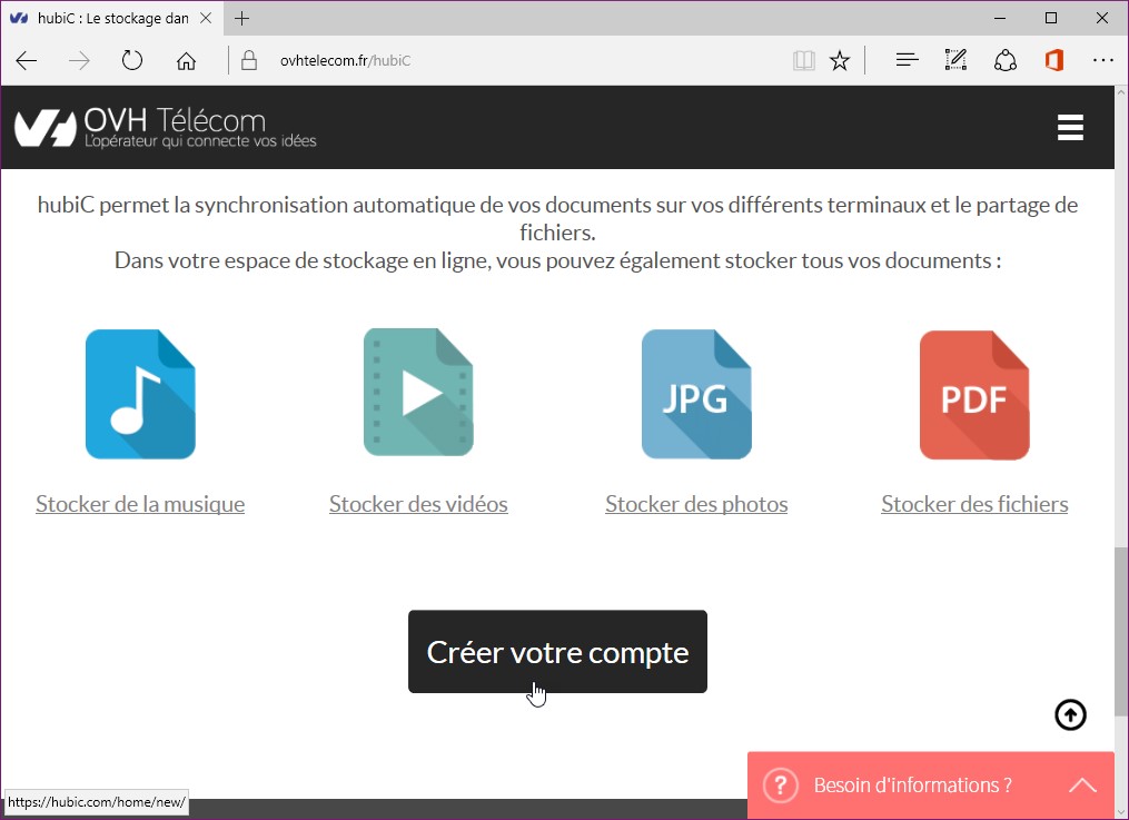 Par la suite, lorsque vous voudrez accéder à votre espace en ligne dans un navigateur, il vous suffira de taper hubic.com dans la barre d’adresses et d’appuyer sur la touche Entrée du clavier. Si vous avez mémorisé vos identifiants dans le navigateur, vous serez automatiquement redirigé vers votre espace en ligne.