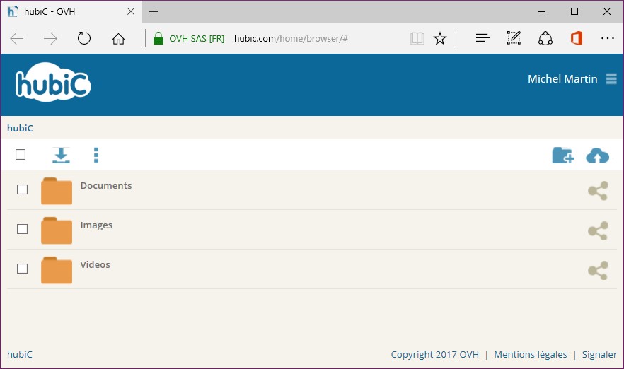 Si vous cliquez sur Aller à l’application web hubiC, vous accédez directement à votre espace en ligne :