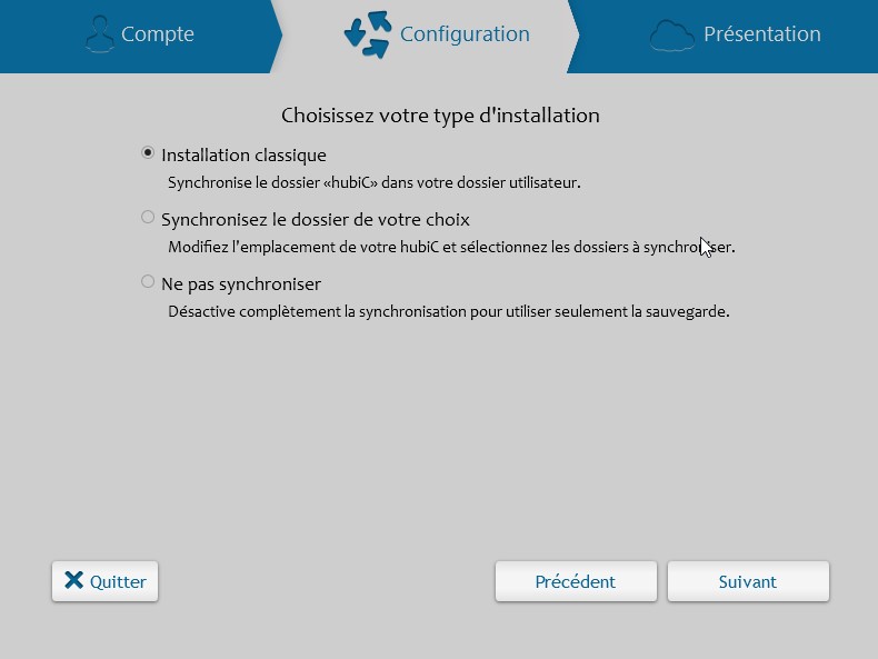 Si vous choisissez l’installation classique, les fichiers de hubiC sont sauvegardés localement dans un sous-dossier de votre dossier utilisateur.