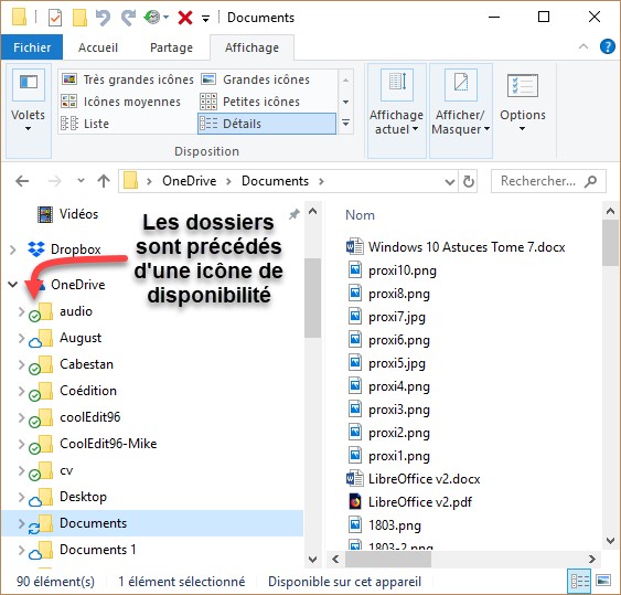 Désormais, les dossiers de votre espace OneDrive sont précédés d’une icône qui indique leur état de disponibilité :