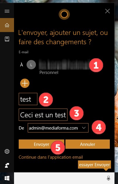 Cortana vous demande à qui vous voulez envoyer l’e-mail.