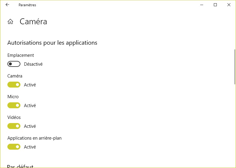 Cliquez alors sur le lien Options avancées. Dans la fenêtre qui s’affiche, vous pouvez définir les autorisations pour cette application :