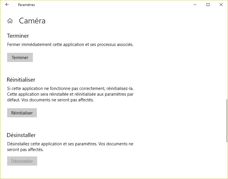 Mais aussi terminer, réinitialiser et désinstaller l’application :