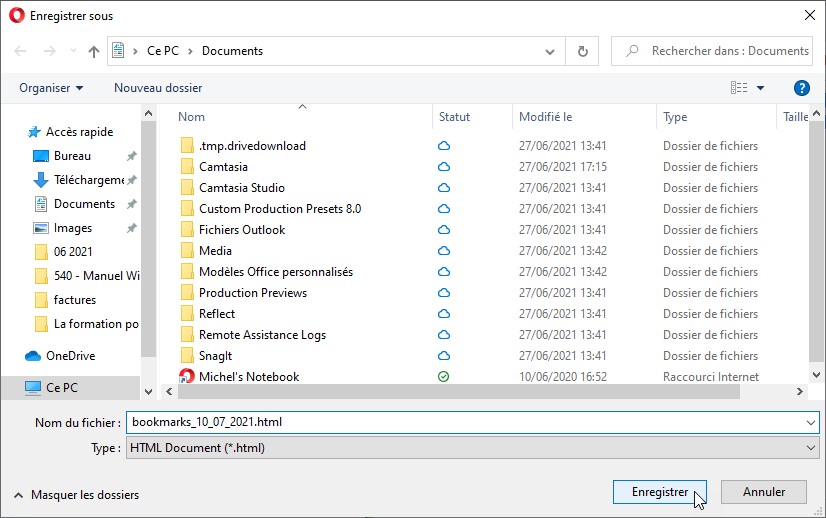 La boîte de dialogue Enregistrer sous s’affiche. Choisissez un dossier de sauvegarde et un nom pour la sauvegarde et cliquez sur Enregistrer :