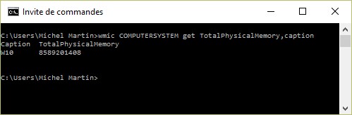 wmic COMPUTERSYSTEM get TotalPhysicalMemory,caption