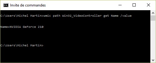 wmic path Win32_VideoController get Name /value