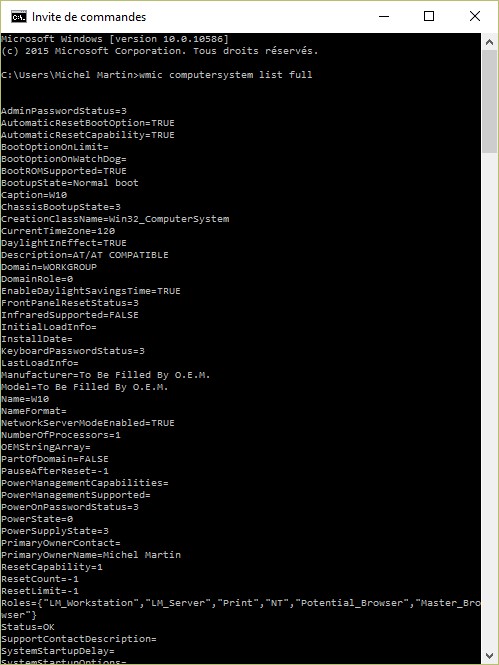 wmic computersystem list full