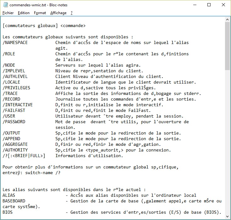 wmic /? >c:\data\commendes-wmic.txt