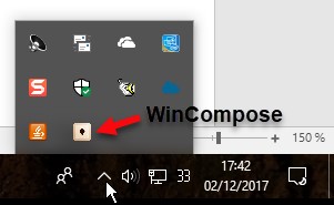 Lancez l’application en double-cliquant sur l’icône WinCompose.exe. Une icône apparaît dans la zone de notification :