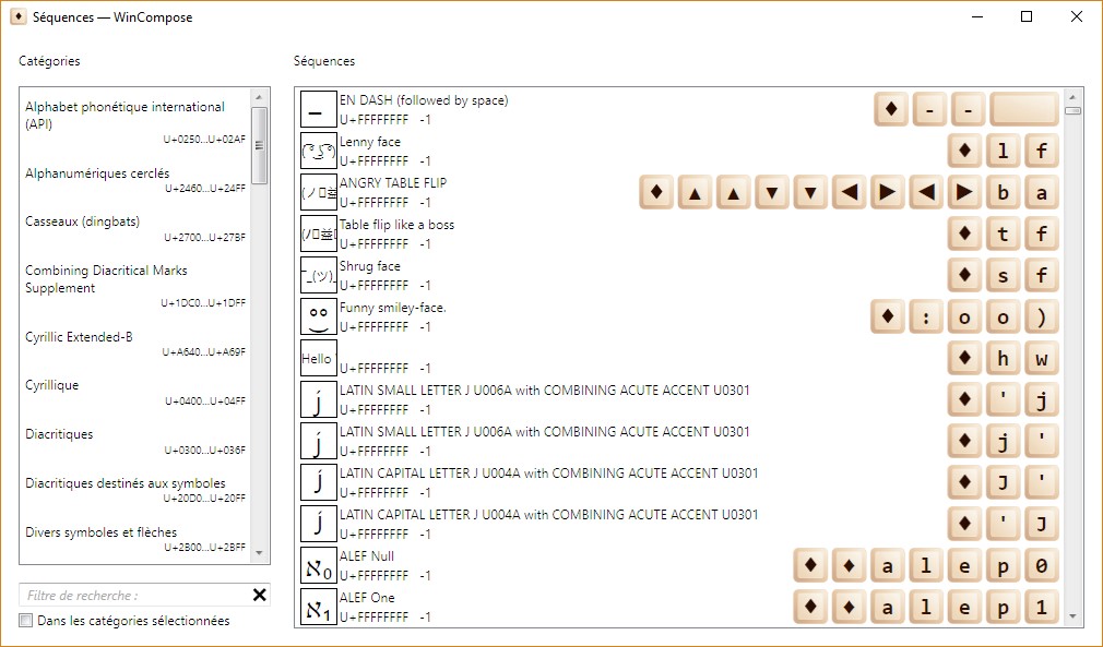 Double-cliquez sur l’icône de WinCompose pour afficher la fenêtre principale de l’application. Voici ce que vous obtenez :