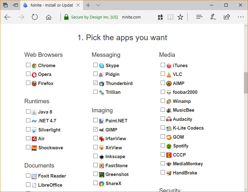 Allez sur le site https://ninite.com/ et cochez les cases des logiciels que vous voulez installer :