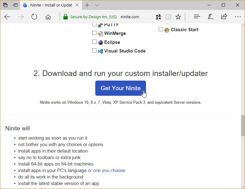 Cette première étape terminée, cliquez sur Get Your Ninite :