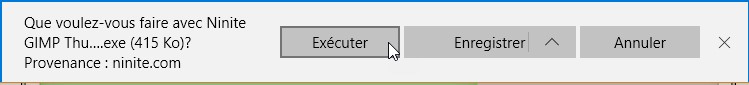 Un fichier exécutable vous est immédiatement proposé en téléchargement. Cliquez sur Exécuter pour commencer immédiatement l’installation ou sur Enregistrer pour l’enregistrer sur vos unités de masse. Dans le deuxième cas, vous pourrez réutiliser ce fichier sur un ou plusieurs autres PC. La copie d’écran qui suit a été réalisée sur le navigateur Microsoft Edge. Si vous utilisez un autre navigateur, la demande d’exécution/enregistrement sera différente :