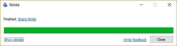 Une fois toutes les applications téléchargées et installées, une boîte de dialogue indiquant Finished s’affiche. Cliquez sur Close pour la fermer :