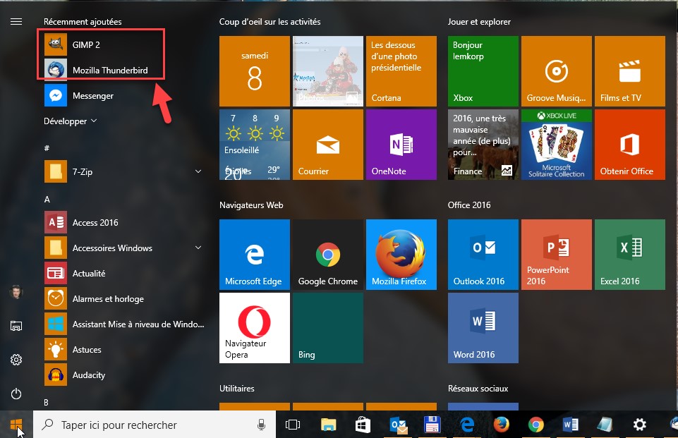 Comme vous pouvez le constater, les applications sélectionnées (Gimp et Thunderbird dans mon cas) ont bien été installées :