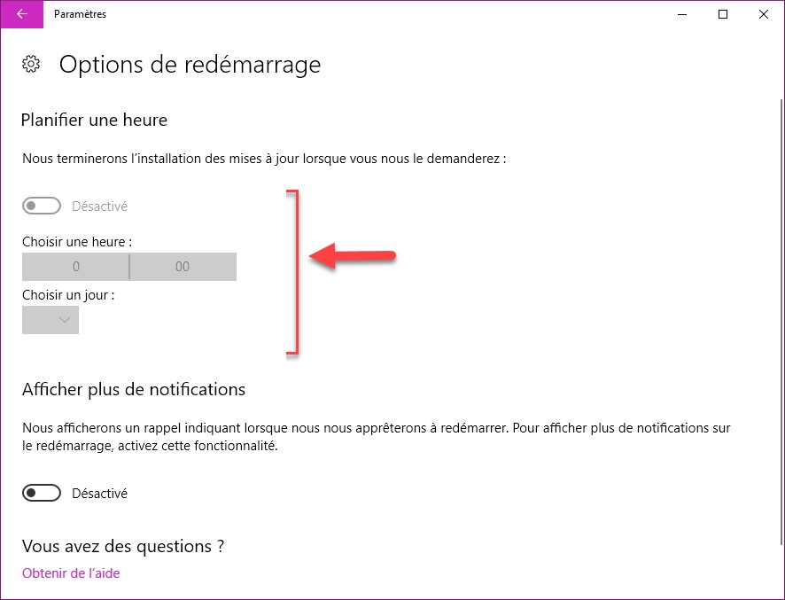 Une autre situation est possible : Windows télécharge une mise à jour et vous demande de redémarrer l’ordinateur mais vous ne pouvez pas interrompre le traitement en cours. Vous pouvez modifier vos heures de travail comme il a été dit précédemment, mais il y a encore mieux : vous pouvez planifier le jour et l’heure du redémarrage.