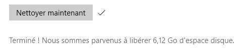 Enfin, vous pouvez cliquer sur Nettoyer maintenant (5) pour forcer le nettoyage du PC. A la fin du processus, un message indiquera l’espace libéré :