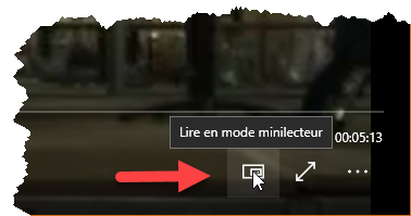 Vous avez envie de regarder une vidéo en continuant à travailler sur votre ordinateur ? Le mode mini lecteur de l’application Films et TV est fait pour vous. Cliquez sur Démarrer ou appuyez sur la touche Windows du clavier, tapez film et cliquez sur Films et TV dans la partie supérieure du menu Démarrer. L’application Films et TV se lance. Ouvrez la vidéo et cliquez sur l’icône Lire en mode minilecteur, dans l’angle inférieur droit de la fenêtre :