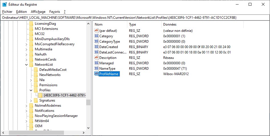 Ordinateur\HKEY_LOCAL_MACHINE\SOFTWARE\Microsoft\Windows NT\CurrentVersion\NetworkList\Profiles