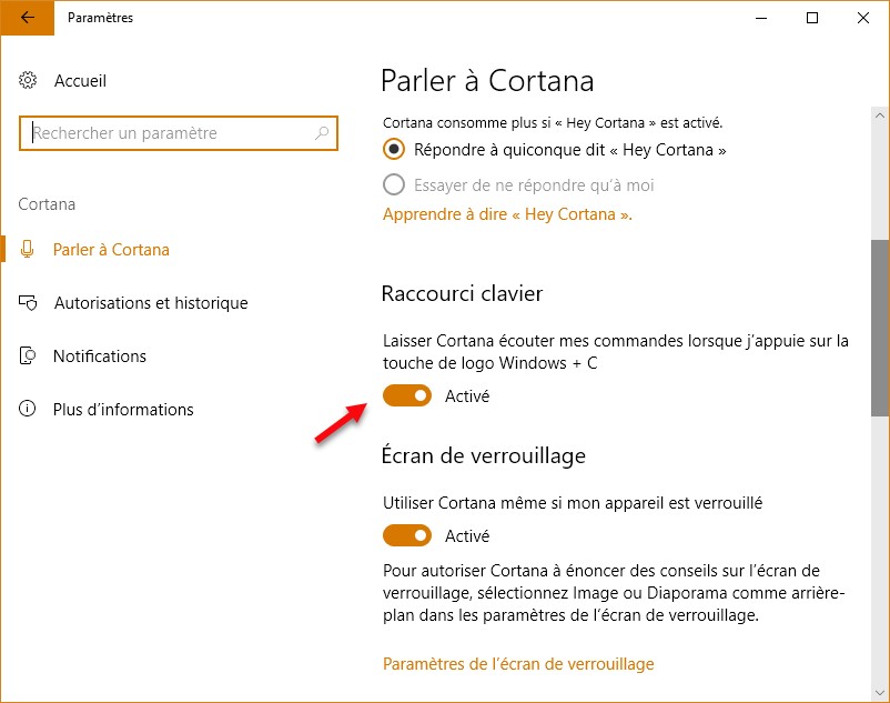 Refermez la fenêtre des paramètres. Ça y est, vous pouvez utiliser le raccourci Windows + C pour parler à Cortana.