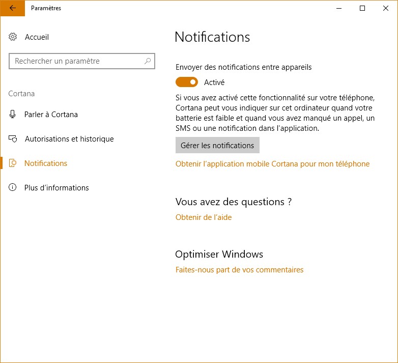 - Accéder à des conseils pour optimiser le fonctionnement de Cortana.