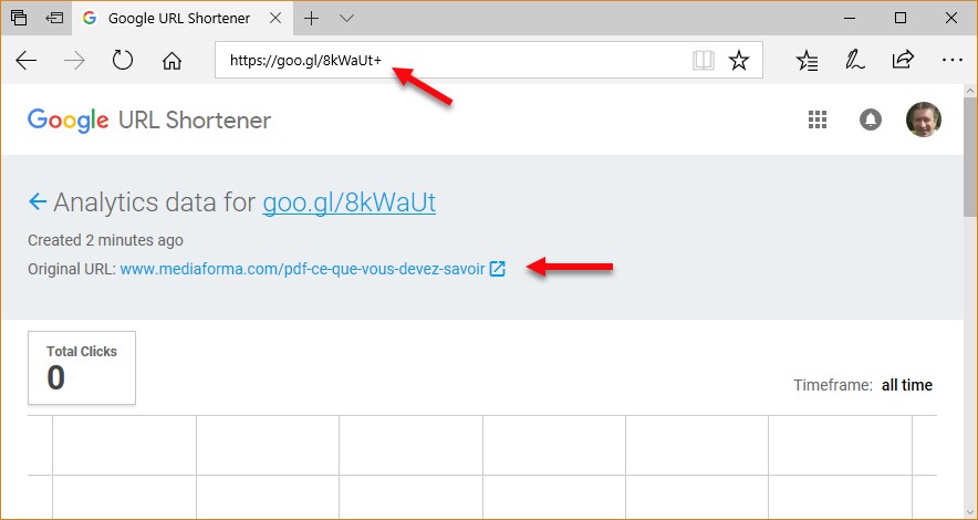 Vous vous demandez certainement comment faire pour savoir ce qui se cache derrière de telles URL. Peut-être allez-vous atterrir sur une page qui contient un virus ? Heureusement, il existe une technique très simple et totalement inoffensive pour obtenir l’URL in extenso correspondant à une URL raccourcie : il suffit d’ajouter le signe « + » à la suite de l’URL raccourcie.