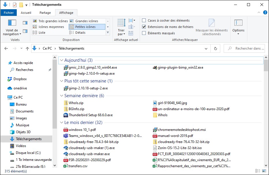 Depuis quelques temps, dans l’explorateur de Windows 10, les dossiers et fichiers sont classés dans des rubriques :