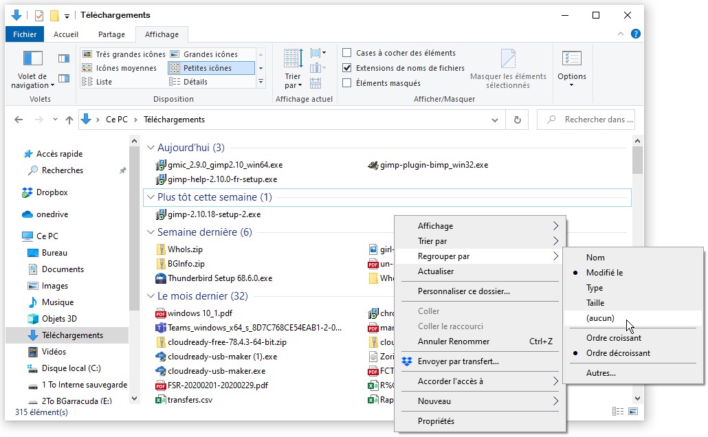 Windows 10 – Supprimer l’affichage par groupes dans l’explorateur de fichiers
