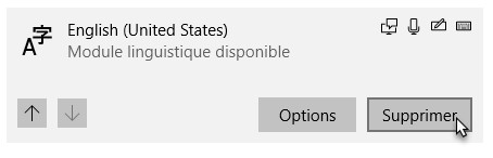 Cliquez sur Français et indiquez qu’il s’agit de la langue par défaut. Cliquez sur la langue que vous venez d’ajouter et supprimez-la.