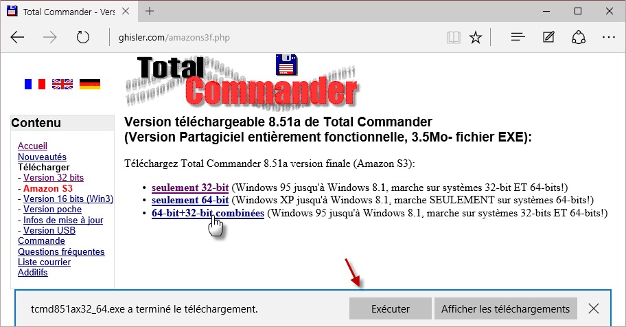 Tous les liens hypertextes ne pointent pas vers des pages Web. Certains font référence à des fichiers auto-extractibles ou compressés. Lorsque vous cliquez sur un tel lien, un message s’affiche dans la partie inférieure de l’écran. Ici, par exemple, le fichier que nous sommes sur le point de télécharger installera le gestionnaire de fichiers Total Commander.