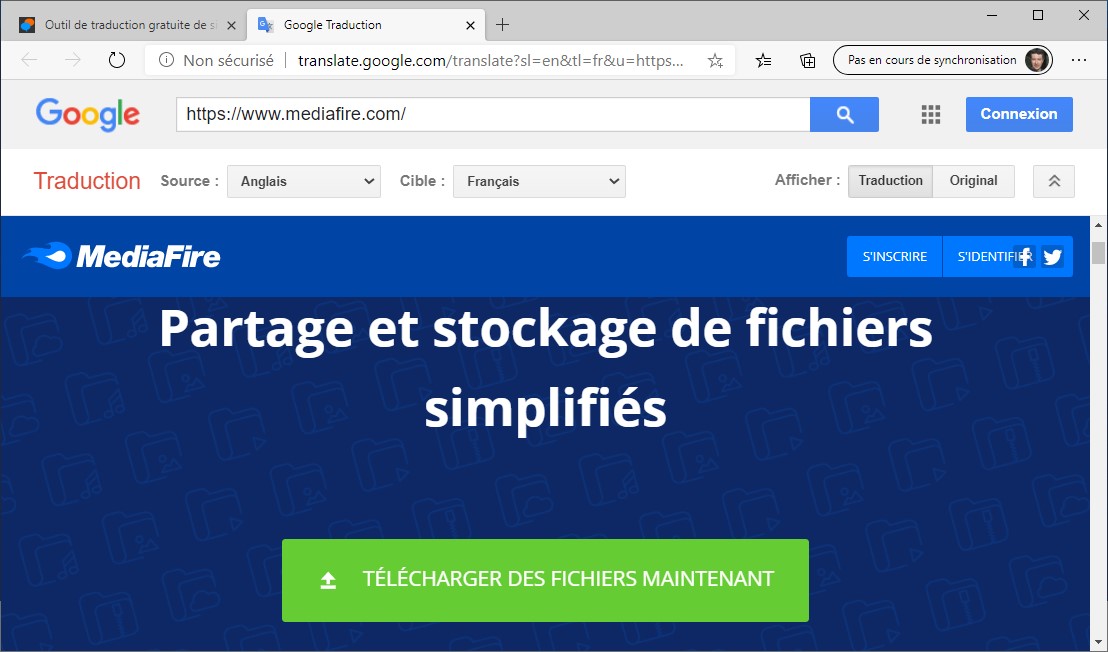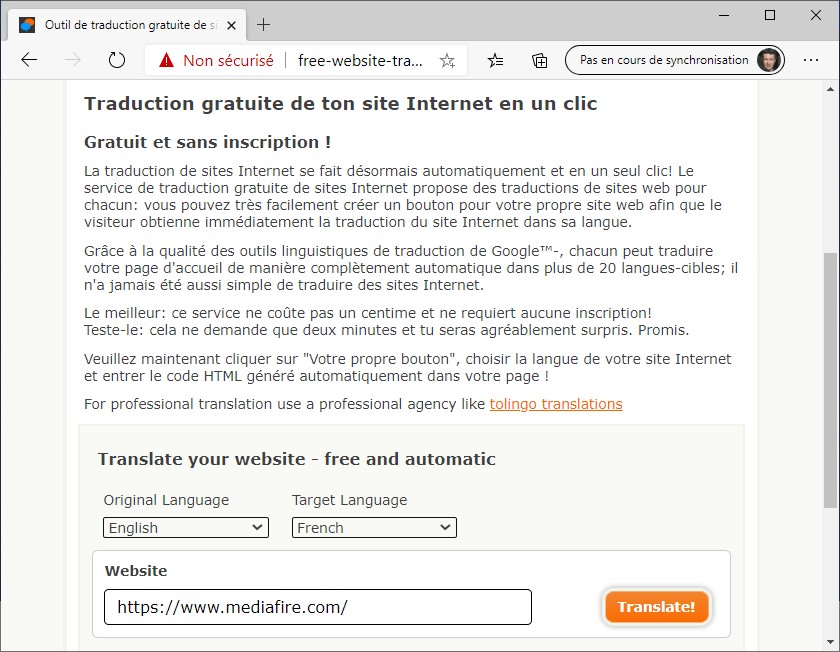 Alors que j’écris ces lignes, la méthode décrite dans cet article fonctionne dans Google Chrome et dans la dernière version du navigateur Edge. Par contre, la traduction est bloquée par une stratégie de sécurité dans le navigateur Firefox.