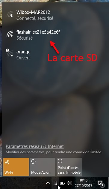 Cliquez sur l’icône Réseau dans la zone de notification pour accéder au Wifi de la carte SD :