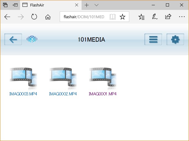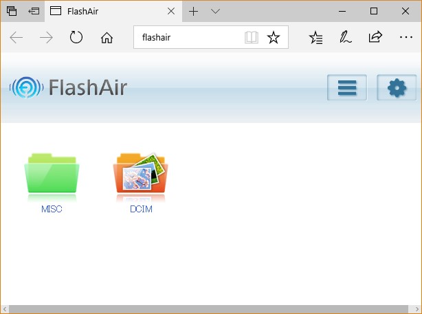 Votre navigateur Web par défaut s’ouvre et donne accès à la carte SD à travers l’URL http://flashair/ :