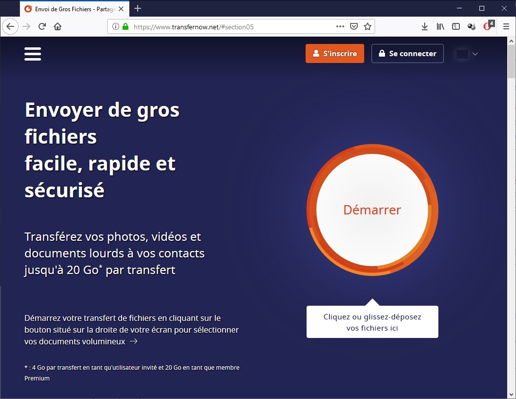 Nous allons plutôt nous intéresser à un service de partage de fichiers rapide, gratuit et performant : TransferNow. Allez sur le site https://www.transfernow.net/ :