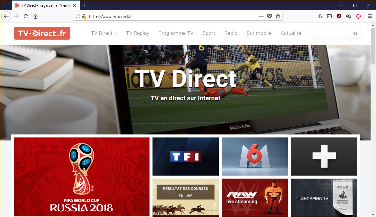 Ouvrez votre navigateur Web et allez sur la page https://www.tv-direct.fr/ :