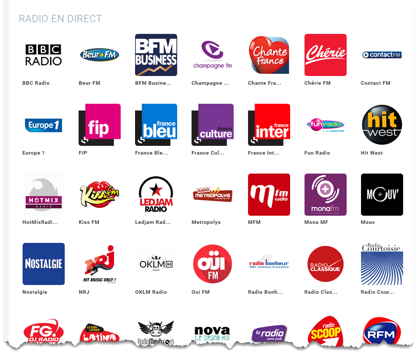 Le menu Radio donne accès à un grand nombre de radios en direct :